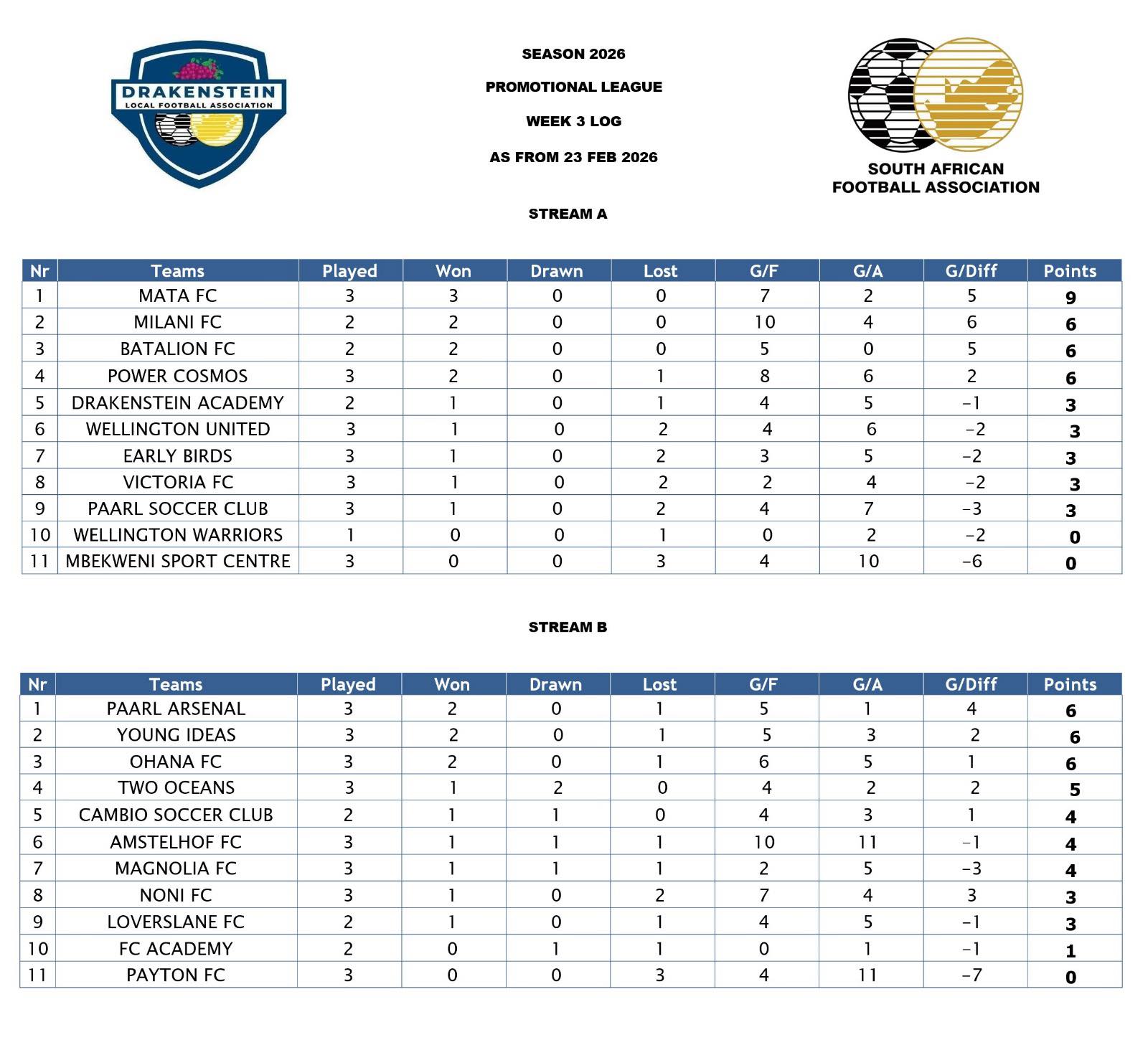 The floodlights at Mbekweni C Field are set to illuminate a heavyweight clash this Thursday, February 26th, at 20:30. In a classic "top of the table" battle, Paarl Arsenal, currently sitting pretty at the summit of Stream B, welcomes an undefeated Cambio Soccer Club in a fixture that could shift the entire momentum of the Drakenstein Promotional League.