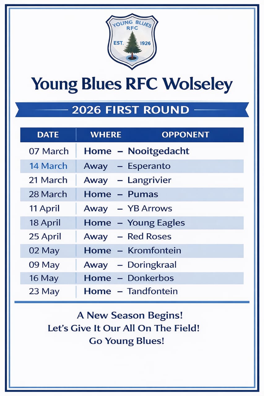 Young Blues RFC Wolseley First Round - Season fixtures